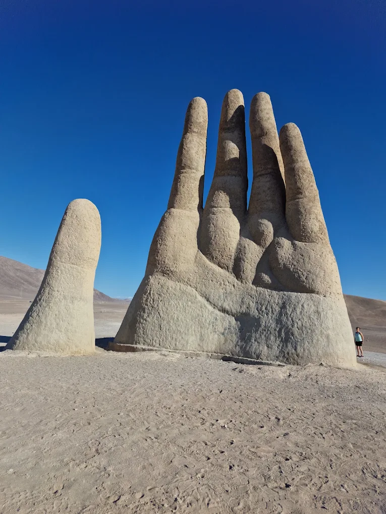 Rising out of the barren Atacama Desert in Chile is a massive, 36-foot-tall stone hand. Built by Chilean sculptor Mario Irarrázabal in 1992, it looks like a buried giant reaching desperately for the sky. It is a surreal, isolated masterpiece located miles from any major civilization. Irarrázabal is known for his works exploring human suffering, and this giant monument represents vulnerability and helplessness in the vastness of the desert. Visitors driving along the Pan-American Highway often pull over just to stand in the shadow of its giant fingers, making it a must-see for anyone obsessed with bizarre, out-of-place roadside attractions.